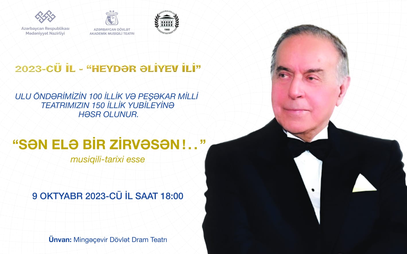 Azərbaycan Dövlət Akademik Musiqili Teatrı Ulu öndər Heydər Əliyevin 100 illik, peşəkar milli teatrımızın 150 illik yubileyinə həsr olunan “Sən elə bir zirvəsən!..” tamaşası ilə bu dəfə mingəçevirlilərin qonağı olacaq.