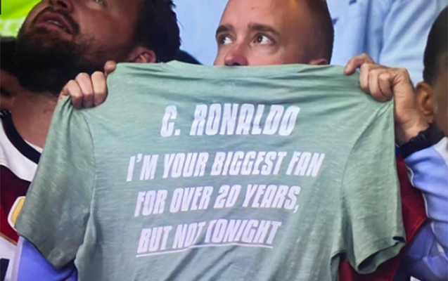 Ötən gün AÇ 2024-ün 1/8 finalında Portuqaliya ilə Sloveniya arasında keçirilmiş görüşdə azarkeşlərdən biri üstündə maraqlı yazı olan forma göstərib.