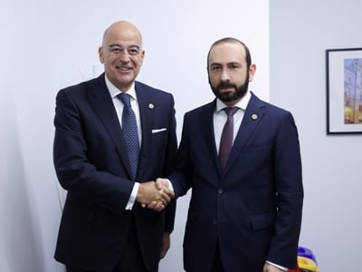 Ermənistanın Xarici İşlər naziri Ararat Mirzoyan Lodzda keçirilən ATƏT Nazirlər Şurasının 29-cu iclası çərçivəsində Yunanıstanın Xarici İşlər naziri Nikos Dendias ilə görüşüb.