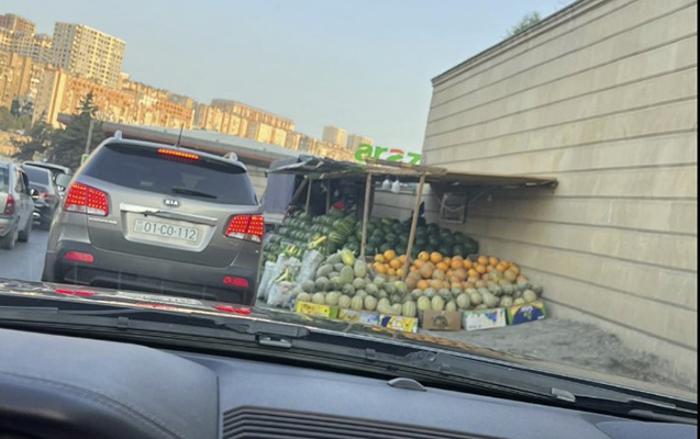 Sosial şəbəkələrdə paytaxtın Suraxanı rayonu ərazisində bostan məhsullarının (qarpız-yemiş) satışı ilə məşğul olan məntəqənin yolun hərəkət hissəsini kəsdiyini əks etdirən görüntü yayılıb.