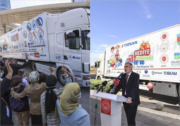 Vətən müharibəsində şəhid olanların və qazilərin övladlarına paylanacaq hədiyyələrlə dolu TIR “Hədiyyə Karvanı Qardaş Ölkə Azərbaycanda” layihəsi çərçivəsində Türkiyənin paytaxtı Ankaradan ölkəmizə yola düşüb.