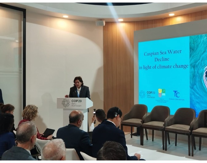 “Ekstremal hava hadisələri, təbii fəlakətlərin tezliyinin artması və biomüxtəliflikdəki dəyişikliklər – bütün bunlar yeni reallıqlara uyğunlaşmaq üçün birgə səylər tələb edir. Son 30 ildə Xəzərin səviyyəsi təxminən 2,5 m azalıb. Son illərdə isə illik azalma həyəcan doğuran 20-30 santimetrə çatıb. Bu sürətli dayazlaşma təcili tədbirlər tələb edən ciddi ekoloji və iqtisadi risklər yaradır”, – U.Tağıyeva bildirib.