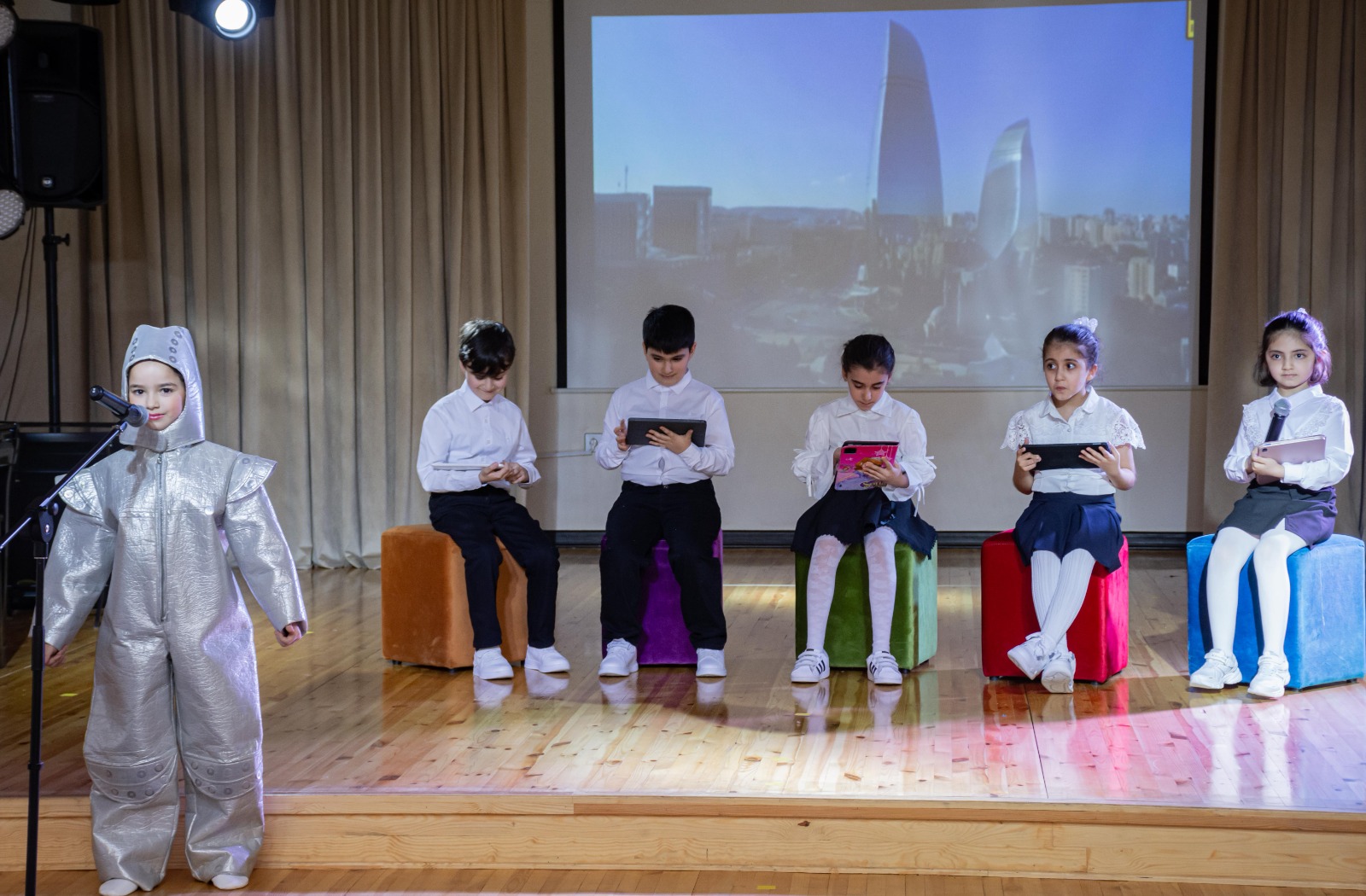 Bədii hissədən sonra Bakı Dövlət Universitetinin professoru, məşhur jurnalist Qulu Məhərrəmli uşaqlara televiziya sənətinin incəliklərindən söz açıb, televiziyanın ölkənin və xalqın inkişafındakı mühüm əhəmiyyəti barədə danışıb. Professor Sevinc xanım Əliyeva isə çıxışında uşaqların inkişaf dövründə televiziya və radionun əhəmiyyətini vurğulayıb, bu cür tədbirlərin vacibliyini qeyd edib.