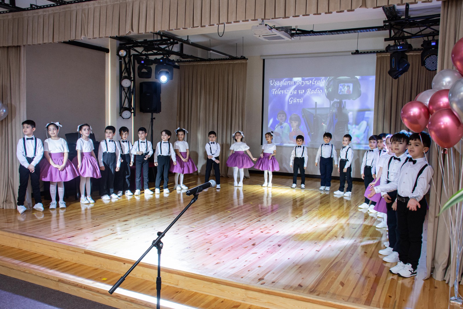 Səid Rüstəmovun “Radio marşı ilə başlayan tədbirdə Dünya Məktəbinin birinci sinif şagirdləri müxtəlif mahnı, rəqs nömrələri ilə çıxış ediblər. Bundan əlavə televiziyanın müxtəlif şöbələrində çalışan texniki və yaradıcı heyətin iş bölgüsünü ifadə edən çarx nümayiş olunub.