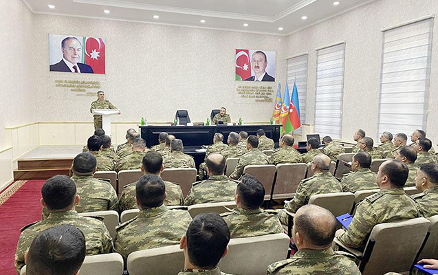 Sonra Quru Qoşunlarının idarə heyəti ilə keçirilən xidməti müşavirədə görülən işlərin təhlili aparılıb, döyüş hazırlığının və hərbi qulluqçuların peşəkarlıq səviyyələrinin daim yüksək səviyyədə saxlanılması, eləcə də bölmələrin və idarəetmə məntəqələrinin praktiki məşq etdirilməsi ilə bağlı göstərişlər verilib.